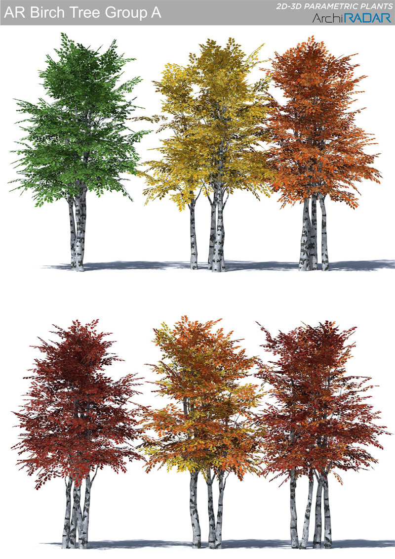 19 3D models of several trees, compatibles with ArchiCAD 16 or higher and CineRender.