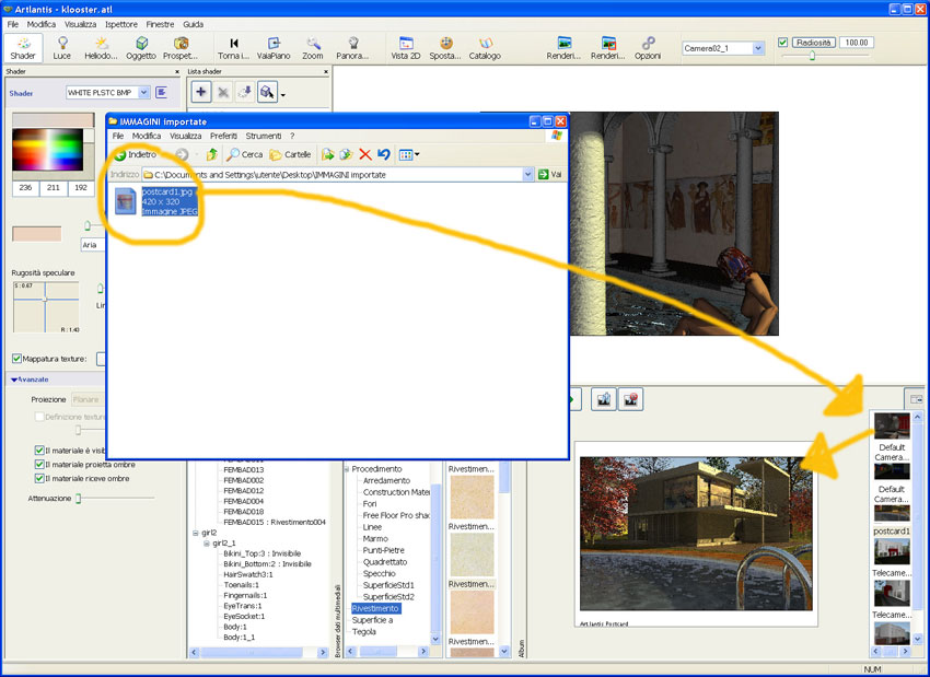 Nota Bene: Le cartoline salvate nuovamente nel software di ritocco immagini diventano inutilizzabili in Artlantis, in quanto le informazioni correlate a shader e texture saranno perse definitivamente.