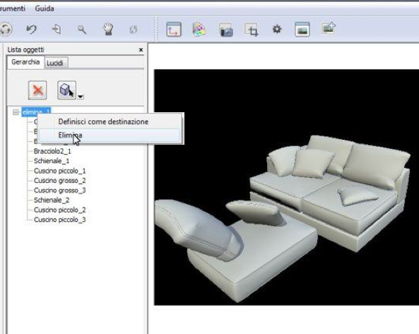 Prendete quindi da internet uno o più divani aventi componenti simili a quelli desiderati. Sono preferibili i formati .3ds e .Obj, ma vanno bene anche oggetti .aof del catalogo di Artlantis.