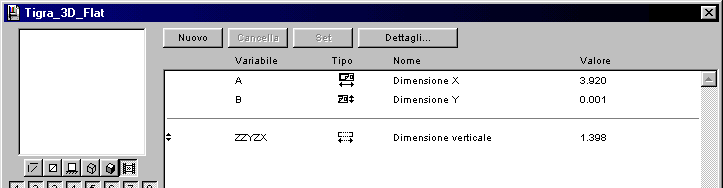 Nella finestra principale troverete i tre parametri AB e ZZYZX, che riportano i valori dimensionali dell'elemento.