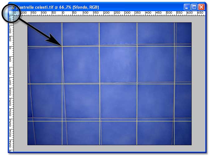 Trascino le maniglie, fino a far coincidere le fughe delle piastrelle con le linee della griglia. Nel corso di questa operazione non è possibile cambiare strumento né utilizzare le palette (es. Navigatore), ma si possono comunque utilizzare vari comandi di spostamento e di zoom, sia da menu che da tastiera (comodo il "panning" attivato semplicemente dalla barra spaziatrice, ma anche lo zoom ottenuto con Alt e la rotella del mouse).