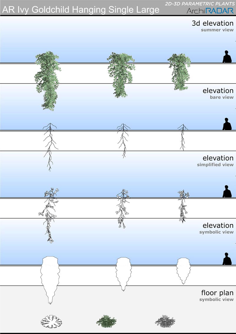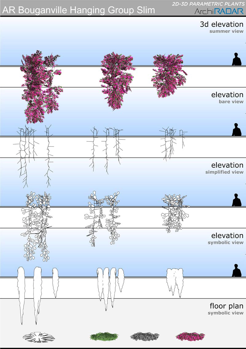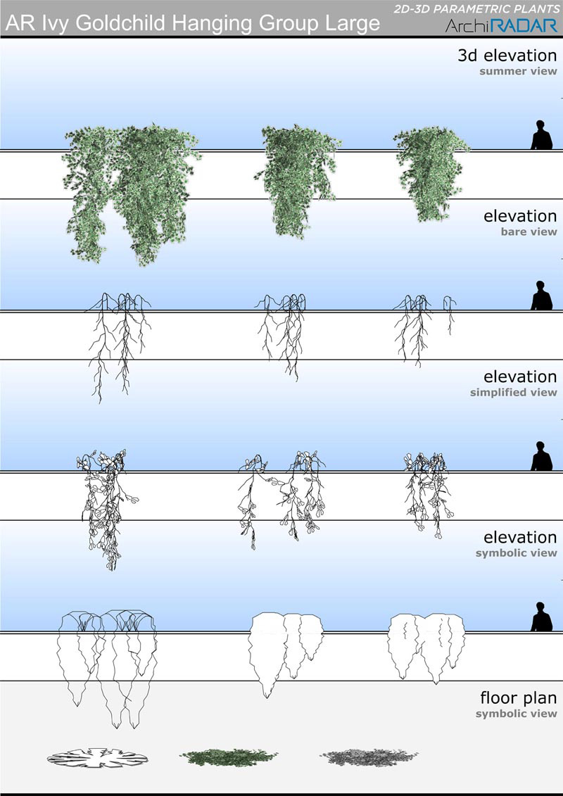 Gli oggetti sono realizzati con un basso numero di poligoni, hanno un fattore di crescita reale in base alla dimensione e inoltre hanno una corrispondente vista simbolica semplificata in prospetto e sezione.