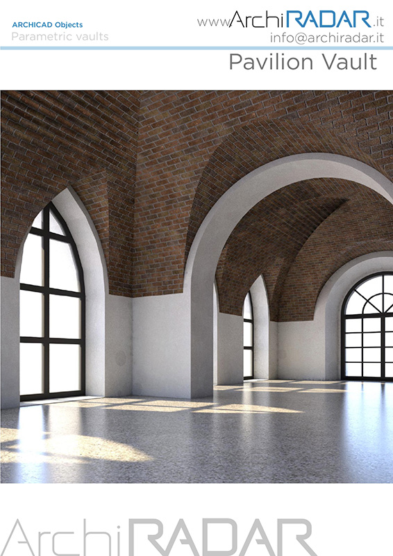 L'oggetto Volta a botte con padiglione parametrica di ArchiRADAR è stato concepito per velocizzare il lavoro del progettista, grazie alla possibilità di gestire molti parametri. I quattro punti della volta sono tutti editabili in forme libere anche autonomamente in altezza.