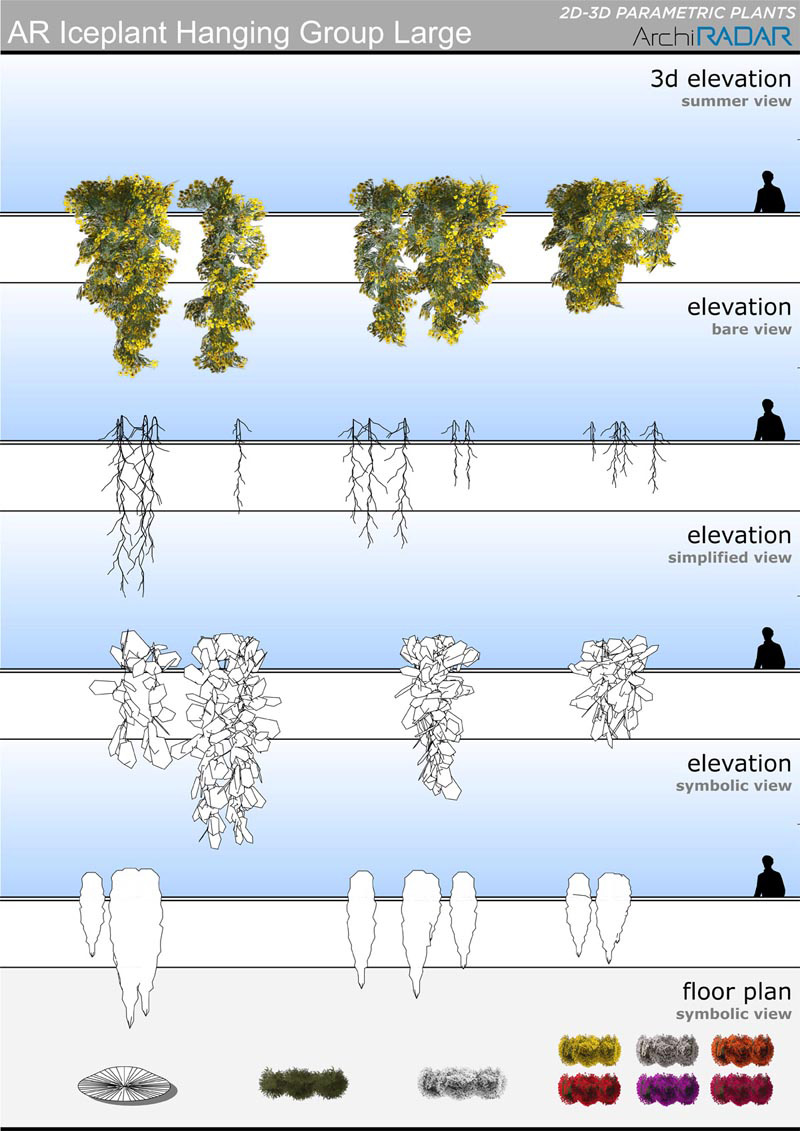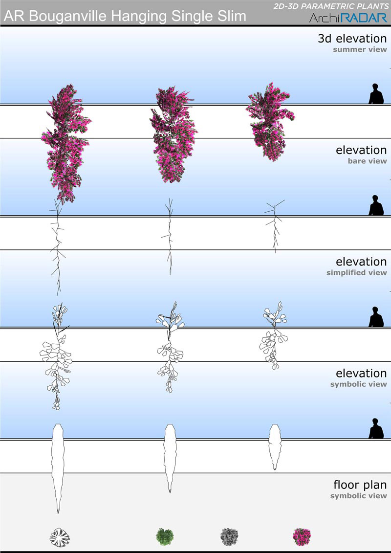 Gli oggetti sono realizzati con un basso numero di poligoni, hanno un fattore di crescita reale in base alla dimensione e inoltre hanno una corrispondente vista simbolica semplificata in prospetto e sezione.