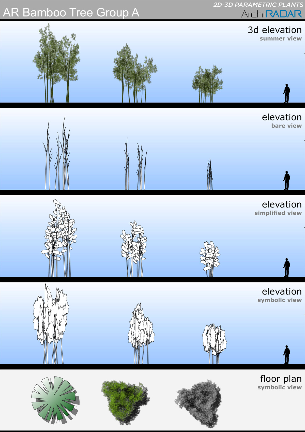 Gli oggetti sono realizzati con un basso numero di poligoni, hanno un fattore di crescita reale in base alla dimensione e inoltre hanno una corrispondente vista simbolica semplificata in prospetto e sezione.Ottimizzati infine per BIMX.