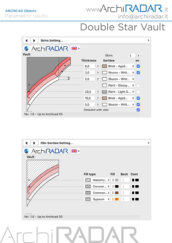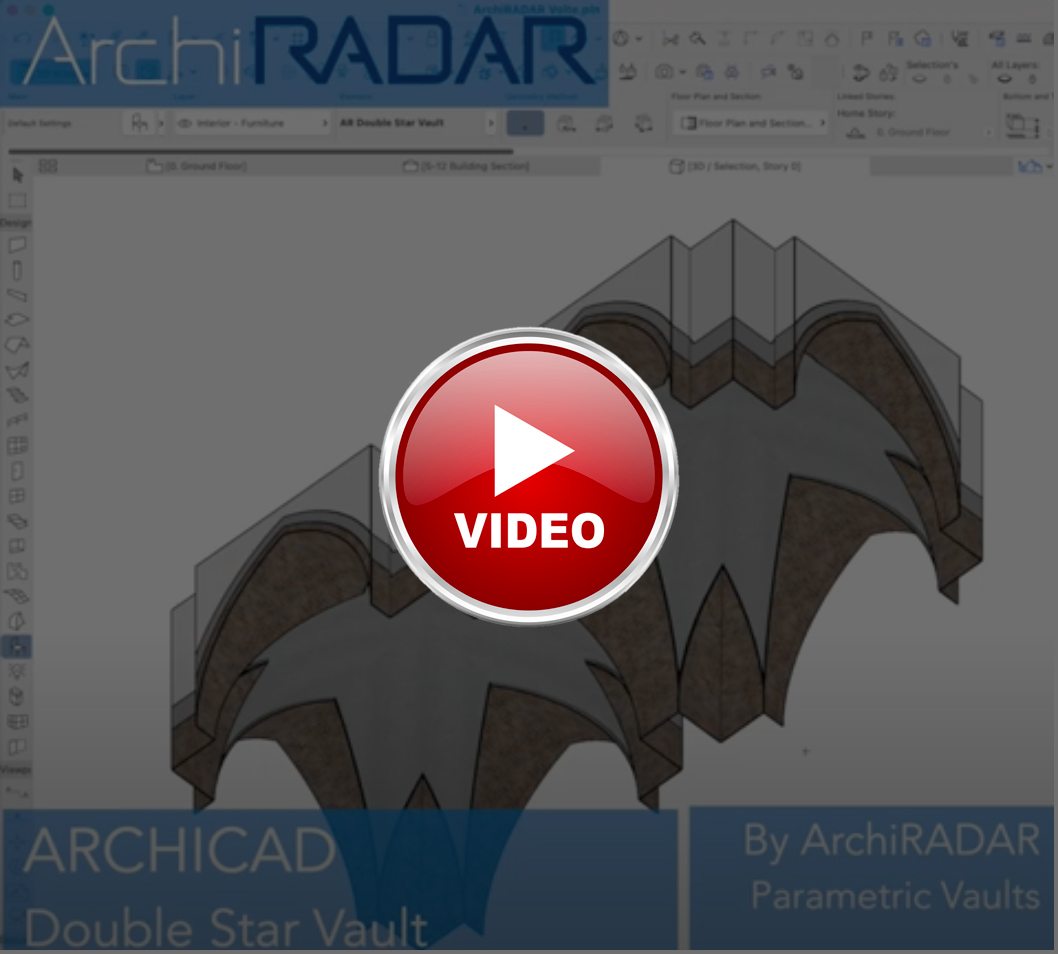 L'oggetto Volta a doppia Stella parametrica di ArchiRADAR è stato concepito per velocizzare il lavoro del progettista, grazie alla possibilità di gestire molti parametri. I quattro punti della volta sono tutti editabili in forme libere anche autonomamente in altezza.